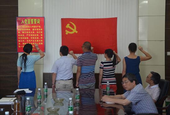 下圖為新入黨黨員宣誓,從左起:丁海清、熊勇、張迎、黃桑